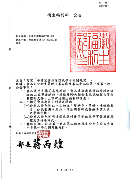 90天毒理實驗備查完成認證書