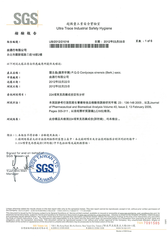 神農牛樟芝SGS認證書