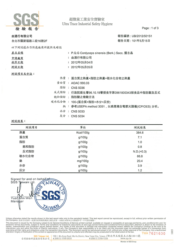 神農牛樟芝SGS認證書